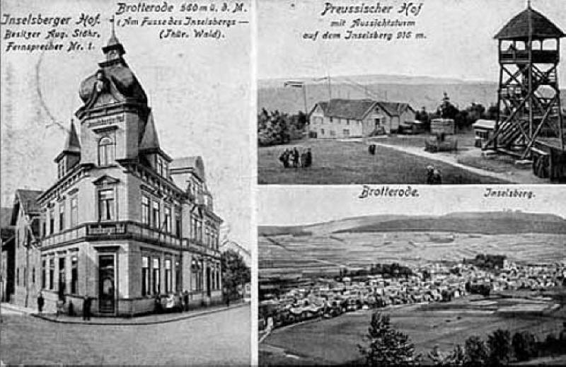 Um die Jahrtausenwende erwachte Thüringen zu neuer Macht. Die Ludowinger wurden Herren über weite Gebiete des alten Königreiches. Ludwig dem Bärtigen, dem Stammvater dieses Geschlechts, wird 1039 vom Kaiser Konrad II. das Land ob der bloßen Loibe als Eigentum verbrieft. In diesem alten Pergament erscheint zum ersten Male der Name Brotterode in seiner alten Form „Brunuwartesrod“. Nun kommen wir bereits in die Zeit in der wir mehr von Brotterode wissen. Die Schreibart des Ortsnamens wechselte im Laufe der Jahrhunderte sehr oft. Das letzte Mal ist ein Wechsel im Jahre 1823 zu verzeichnen, wo Brotterode seine jetzige Schreibart von dem vorherigen Brotteroda bekam. |